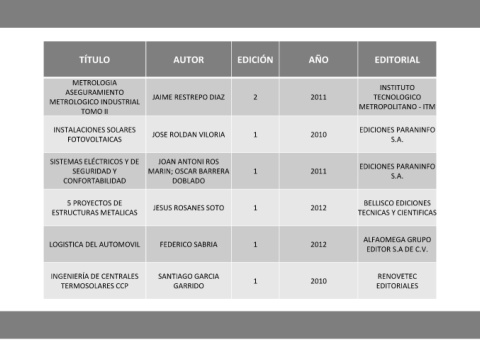 TÍTULO AUTOR EDICIÓN AÑO EDITORIAL