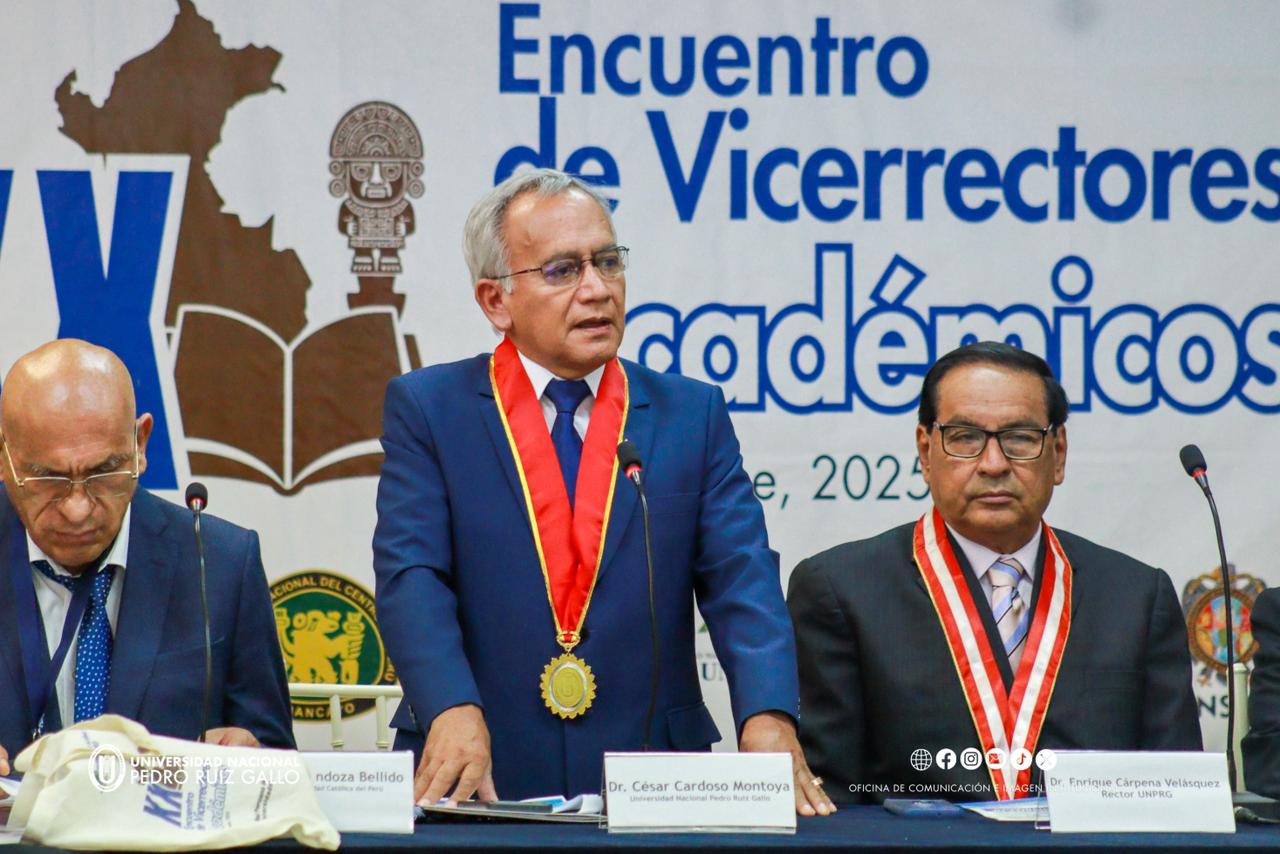 El rector de la UNPRG, Dr. Enrique Cárpena Velásquez, resaltó la relevancia de este espacio de trabajo conjunto, señalando: “Estas reuniones deben estar encaminadas a fortalecer la mejora continua de las universidades.” Sus palabras reflejan el compromiso de nuestra casa superior de estudios con la excelencia académica y la cooperación interinstitucional. Asimismo, participaron el vicerrector académico, Dr. César Cardozo Montoya, y el vicerrector de investigación, Dr. Adriel Ríos Villacorta, junto a vicerrectores académicos de todo el país, consolidando a la UNPRG como un referente en la promoción de la calidad y el avance de la educación superior.