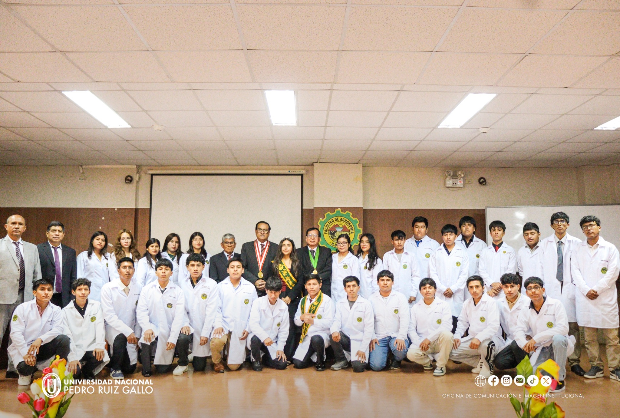 Durante la ceremonia central, se realizó la imposición de chaquetas a los nuevos alumnos, símbolo de identidad y compromiso con la carrera. También se reconoció a estudiantes, docentes, egresados y personal administrativo por su destacada labor y aporte a la facultad.