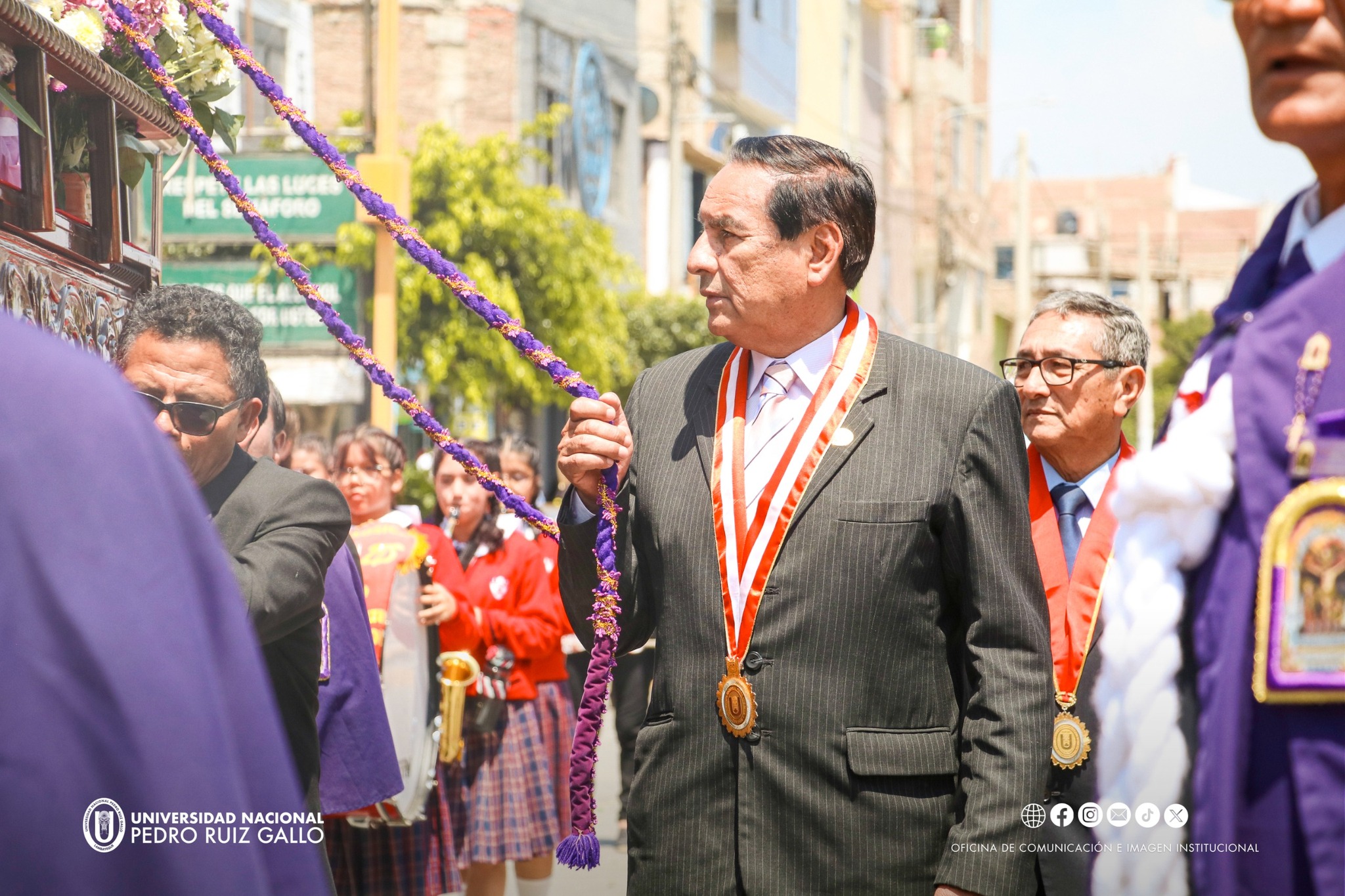 Gallo recibiรณ la sagrada imagen del Seรฑor de los Milagros en el frontis de nuestra casa de estudios. El rector, Dr. Enrique Cรกrpena Velรกsquez, junto a docentes, funcionarios, estudiantes y personal administrativo, participaron de este emotivo acto de fe.