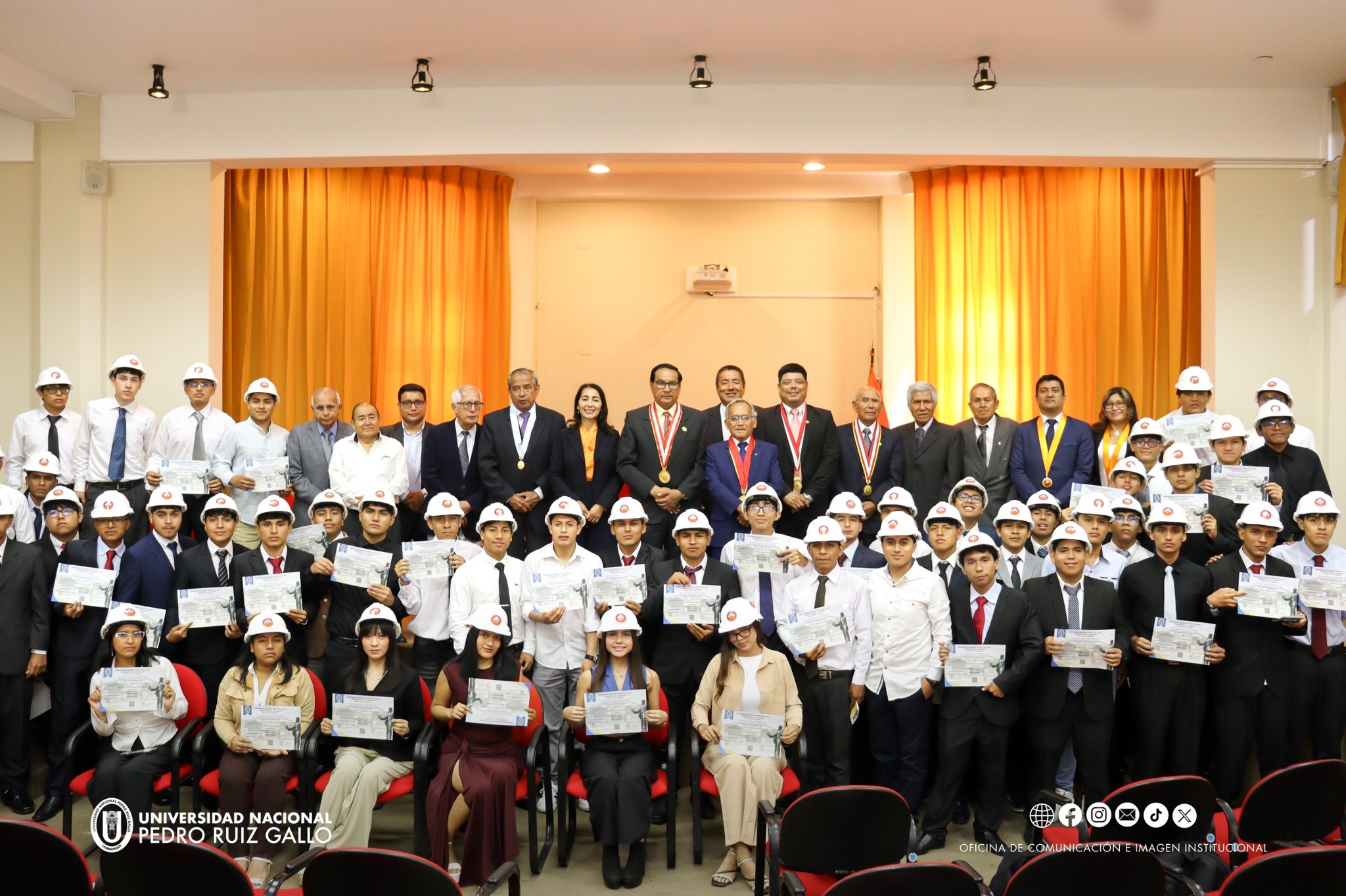Ayer se llevรณ a cabo la ceremonia de bienvenida y entrega de constancias a los ingresantes 2025-II de la Facultad de Ingenierรญa Agrรญcola de la Universidad Nacional Pedro Ruiz Gallo. Durante el emotivo evento tambiรฉn se realizรณ la imposiciรณn de cascos a los estudiantes, sรญmbolo de compromiso, responsabilidad y vocaciรณn profesional.
