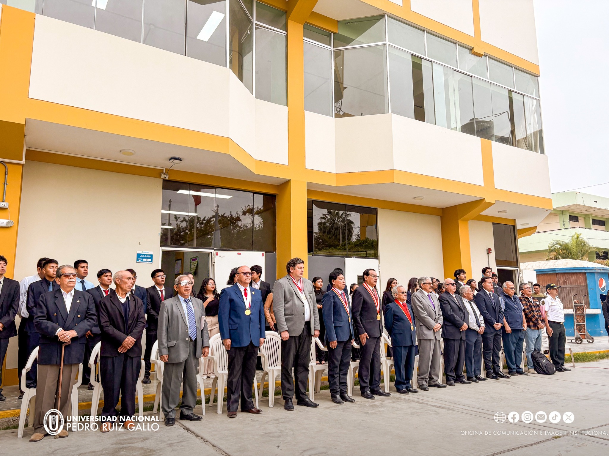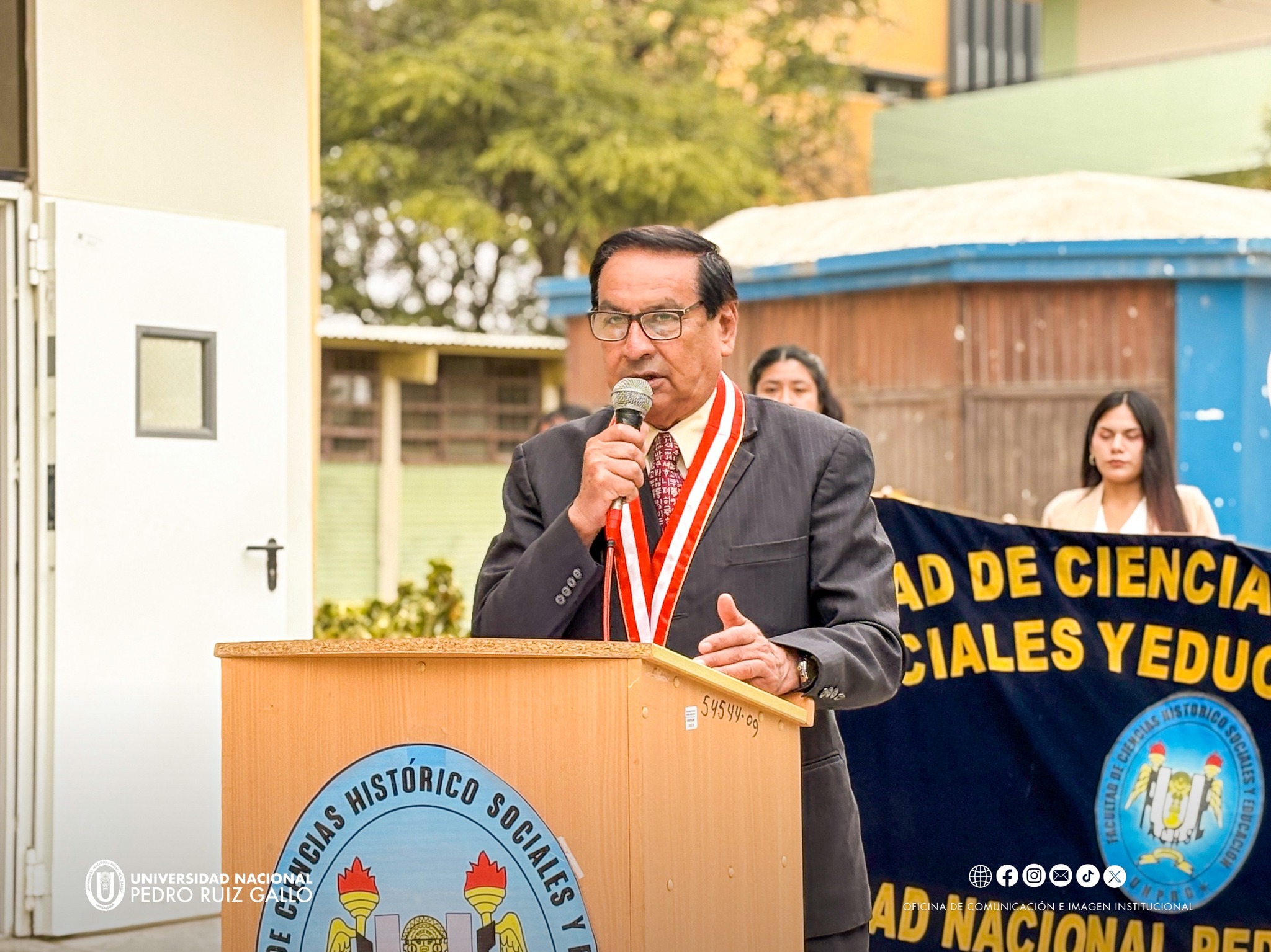 Sociales y Educación, se llevó a cabo el izamiento del Pabellón Nacional, acto que marcó el inicio de la Semana del Arqueólogo UNPRG. La ceremonia contó con la presencia de nuestro rector, Dr. Enrique Cárpena Velásquez, quien brindó unas palabras resaltando la labor de los profesionales e investigadores comprometidos con la preservación del patrimonio cultural.