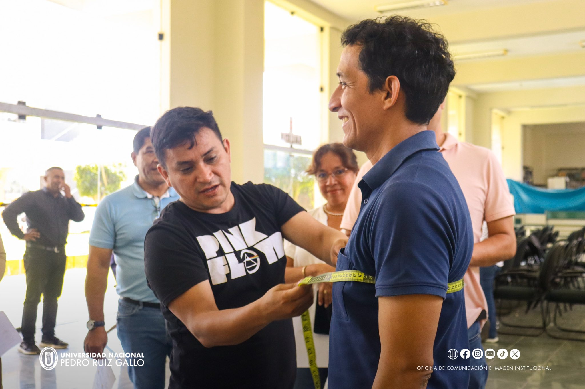 La Universidad Nacional Pedro Ruiz Gallo continรบa cumpliendo los compromisos asumidos en los pactos colectivos suscritos con los sindicatos, brindando al personal administrativo y docente el terno institucional correspondiente. Desde hoy se iniciรณ el proceso de toma de medidas, el cual se desarrollarรก los dรญas 18, 19 y 20, en la Biblioteca de Posgrado.
