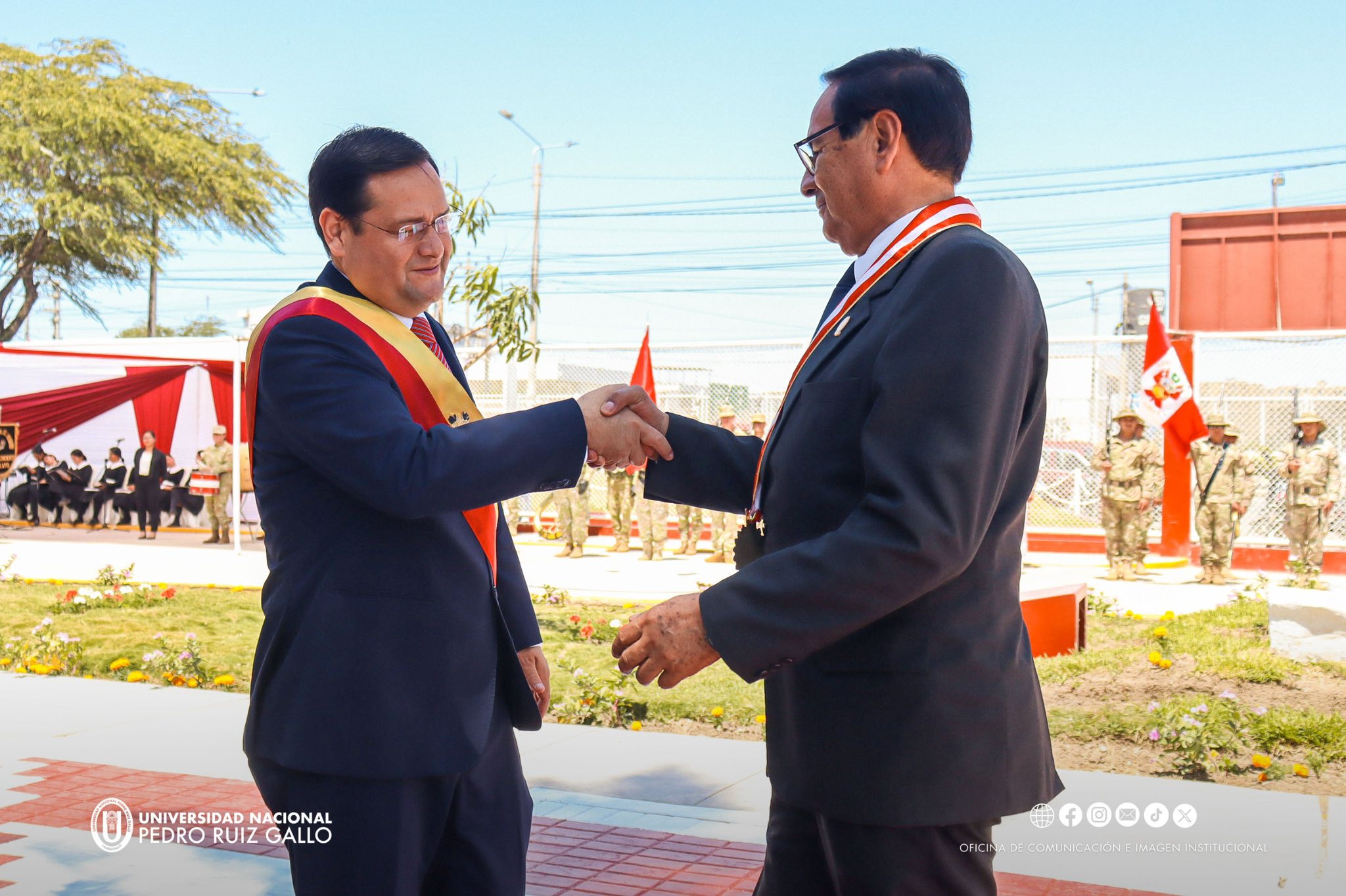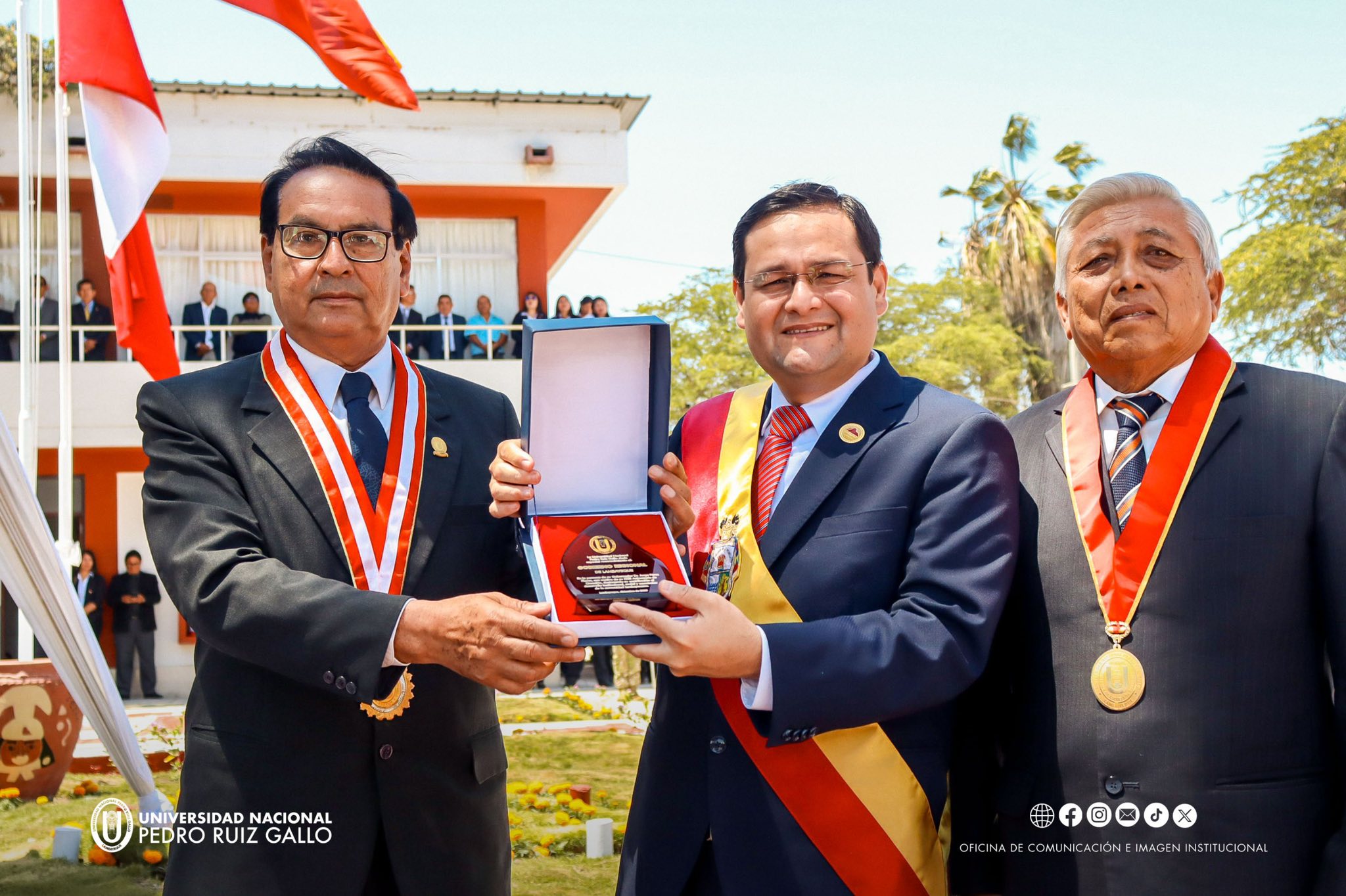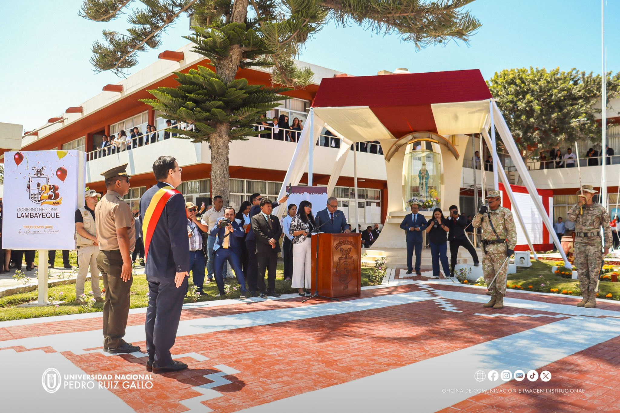 la ceremonia por el 23.ยฐ aniversario de creaciรณn del Gobierno Regional de Lambayeque, actividad que reuniรณ a distinguidas autoridades de la regiรณn. Nuestro rector, Dr. Enrique Cรกrpena Velรกsquez, representรณ institucionalmente a la UNPRG y otorgรณ un reconocimiento en la persona del Dr. Jorge Luis Pรฉrez Flores, gobernador regional, en mรฉrito a este nuevo aniversario y al trabajo desarrollado en beneficio de la regiรณn.