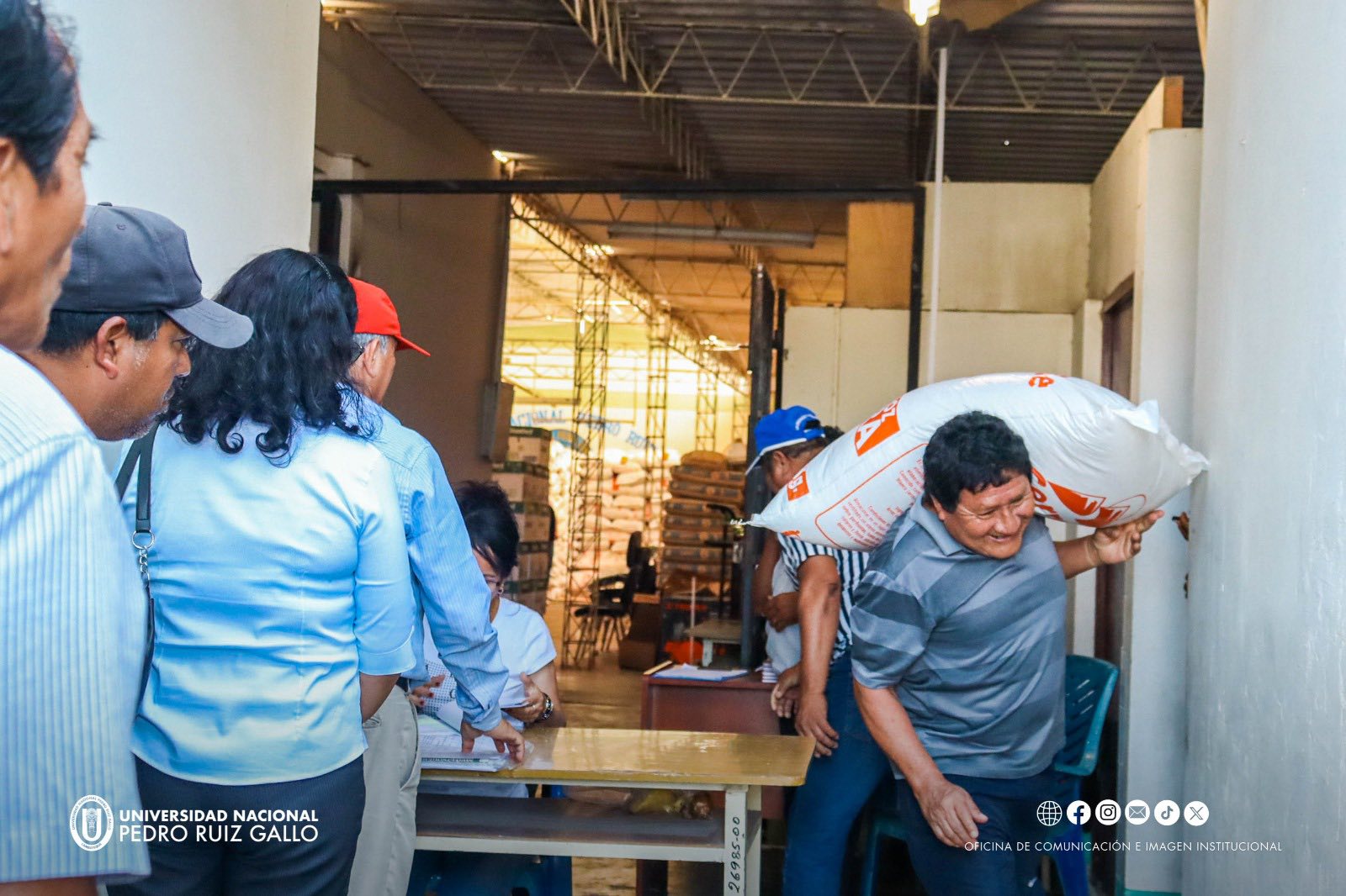 La Universidad Nacional Pedro Ruiz Gallo, liderada por el Rector Dr. Enrique Cรกrpena Velรกsquez, cumpliรณ hoy con lo establecido en el pacto colectivo, realizando la entrega de 663 sacos de arroz destinados al personal administrativo. Esta distribuciรณn se efectuรณ tras la exitosa prueba de cocciรณn y control de calidad, realizada en presencia de representantes de los sindicatos de docentes y administrativos.