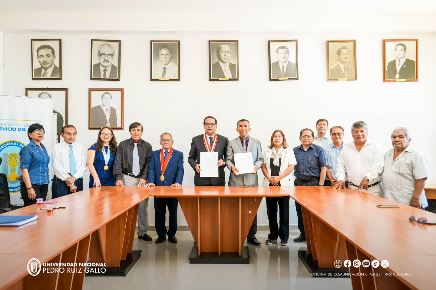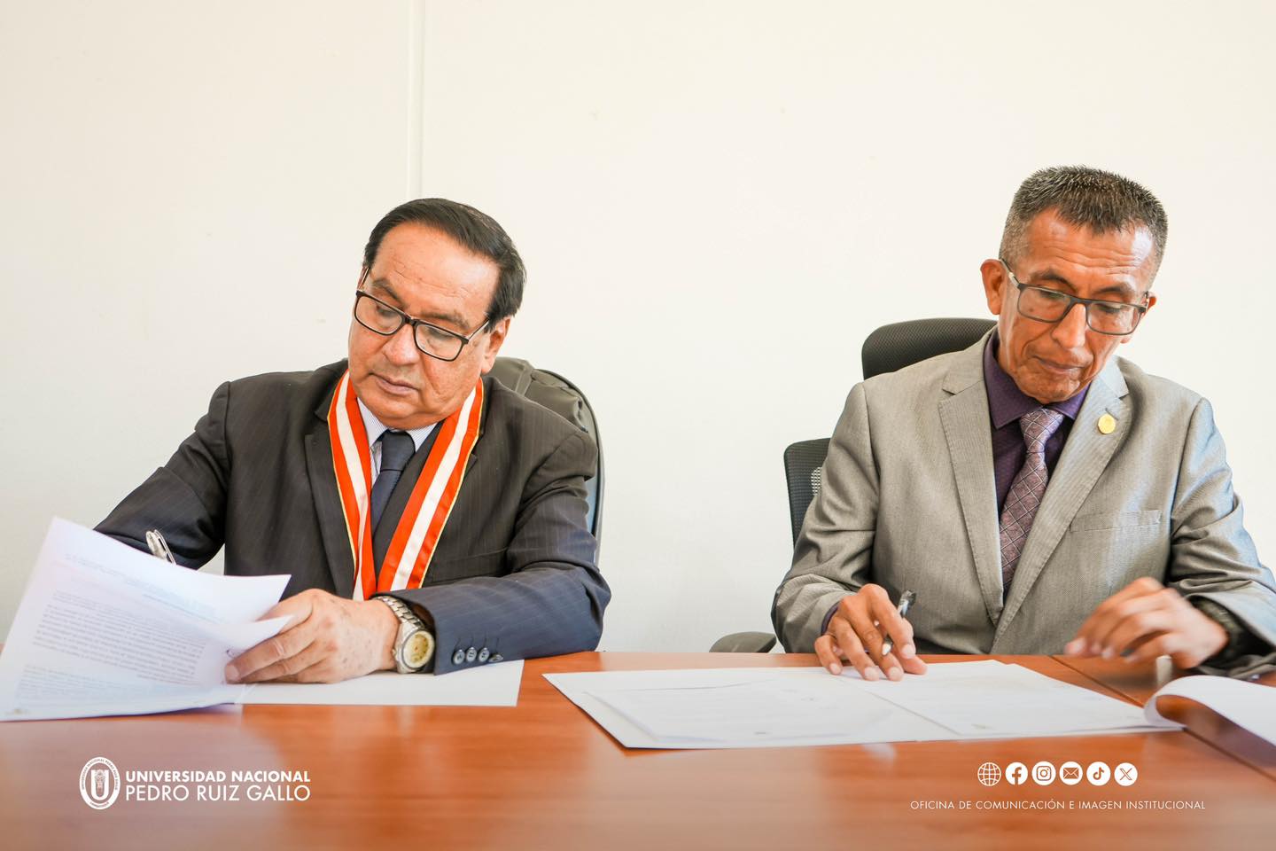 El convenio fue firmado por el rector de la UNPRG, Dr. Enrique Wilfredo Cรกrpena Velรกsquez, y el secretario general del Sindicato de Docentes de la UNPRG โ FEDURG, Mag. Teodoro Martรญnez Inoรฑรกn, contando con la presencia del vicerrector acadรฉmico, Dr. Cรฉsar Cardozo Montoya, asรญ como de los integrantes de la FEDURG.