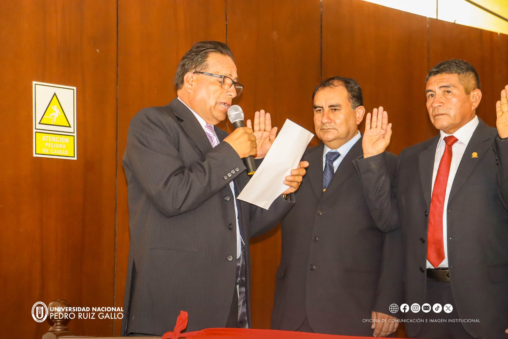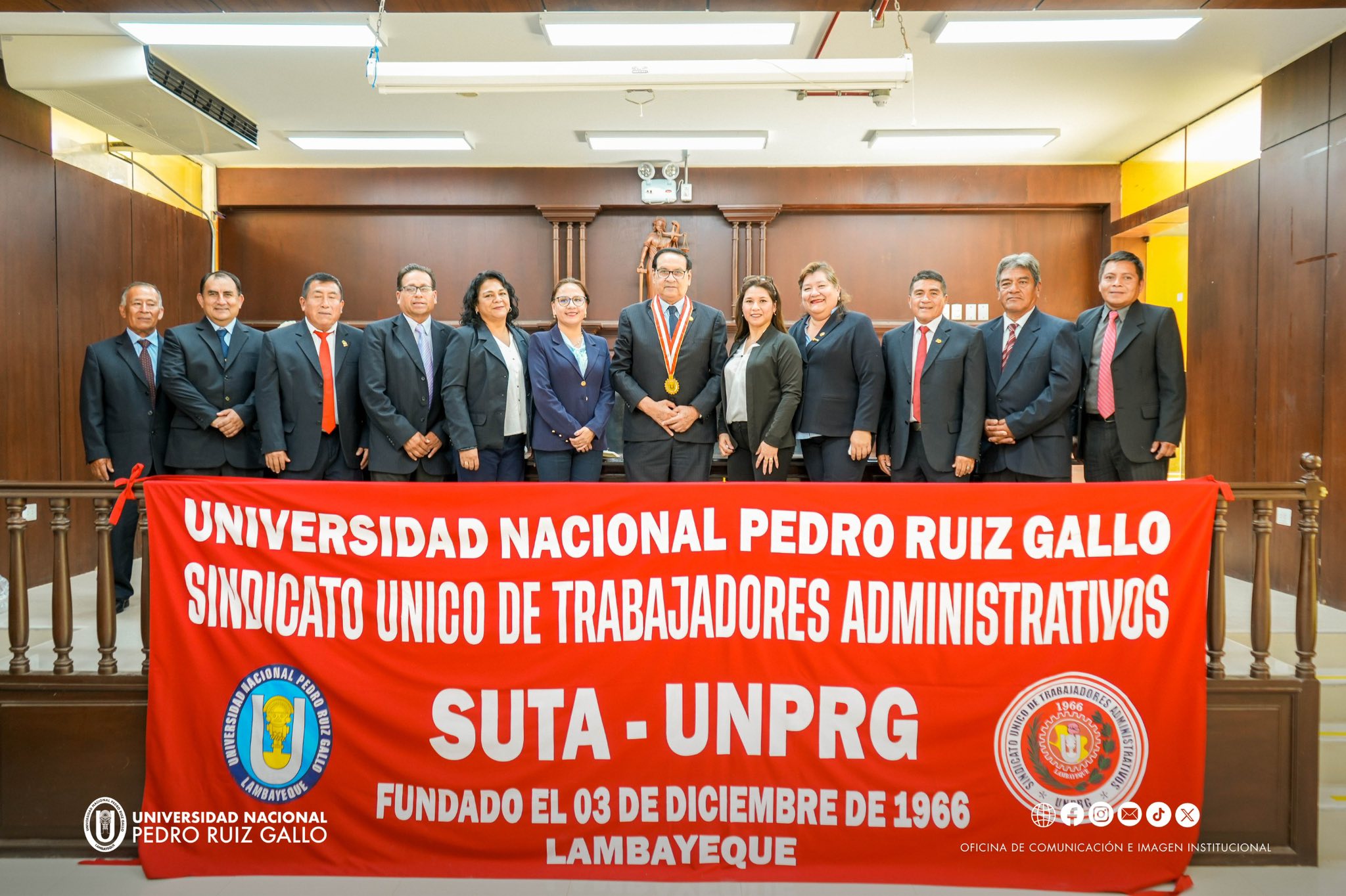 La Universidad Nacional Pedro Ruiz Gallo participรณ en la ceremonia de juramentaciรณn de la nueva Junta Directiva del Sindicato รnico de Trabajadores Administrativos (SUTA), correspondiente al periodo 2026โ2029, realizada en el auditorio de la Facultad de Derecho, con la presencia de autoridades universitarias, encabezadas por el rector Dr. Enrique Cรกrpena Velรกsquez, quien acompaรฑรณ este importante momento institucional.