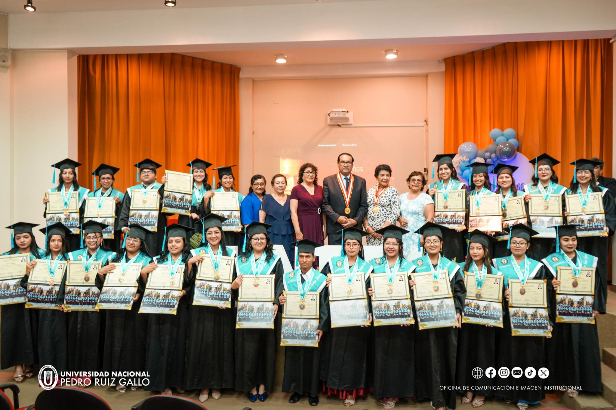 La Universidad Nacional Pedro Ruiz Gallo realizรณ la ceremonia de otorgamiento del grado de Bachiller en Enfermerรญa a 25 egresados, marcando la culminaciรณn de una etapa acadรฉmica construida con esfuerzo, disciplina y vocaciรณn de servicio. Este importante logro representa no solo el cierre de su formaciรณn universitaria, sino tambiรฉn el inicio de un nuevo camino profesional al servicio de la salud y la comunidad.