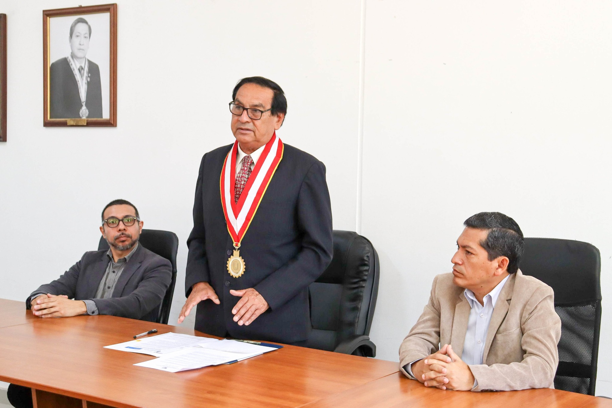 En la firma estuvieron presentes el rector, Dr. Enrique CΓ‘rpena VelΓ‘squez; el jefe de la Oficina de CooperaciΓ³n y Relaciones Internacionales, Mg. JosΓ© Leopoldo Cabrejos Yovera; y los representantes del consorcio, el Gerente General Adjunto, JosΓ© Luis Cruzado Velarde y