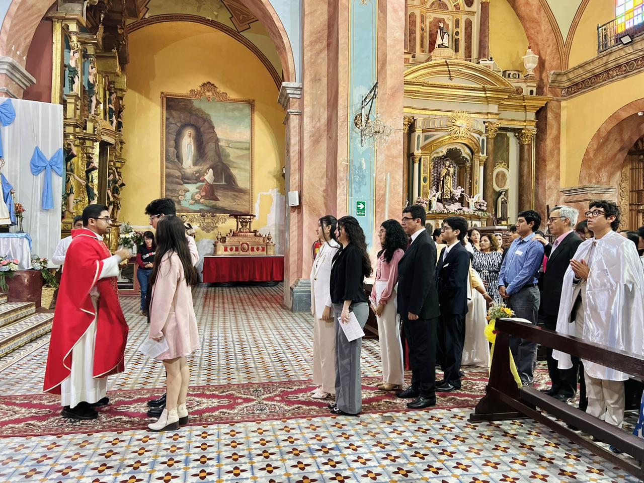 Estudiantes de la Pastoral Universitaria de la UNPRG participaron en la Misa de los Sacramentos de Iniciaciรณn Cristiana, realizada en la Parroquia San Pedro de Lambayeque.